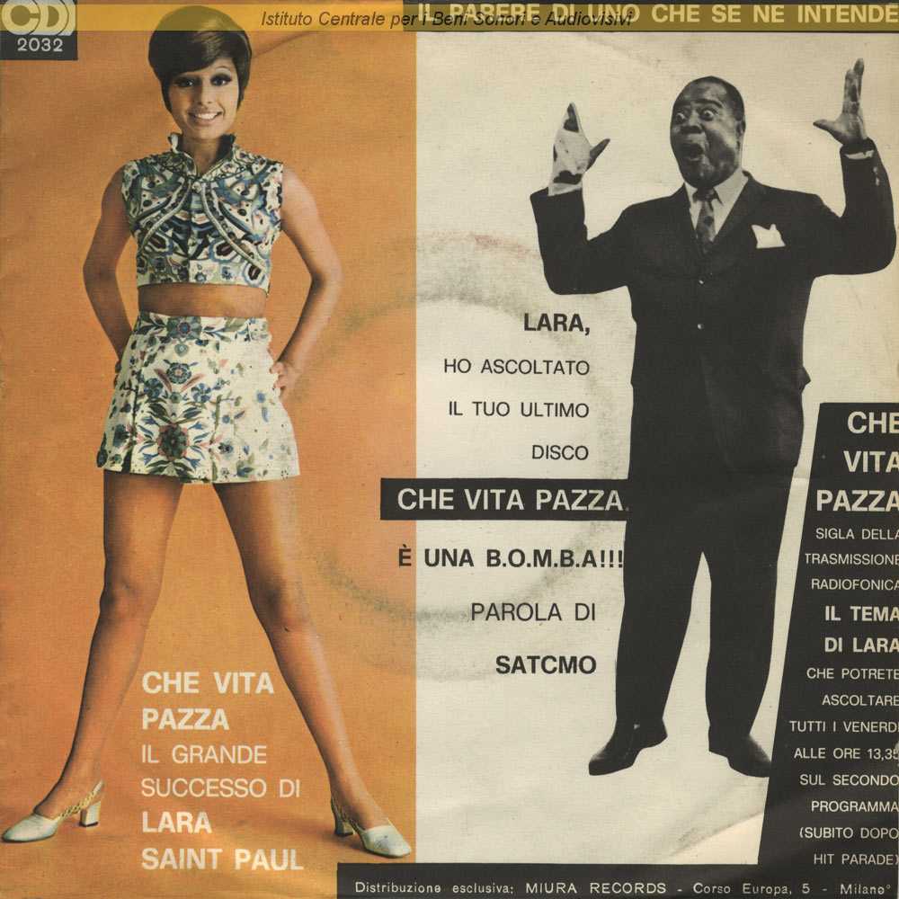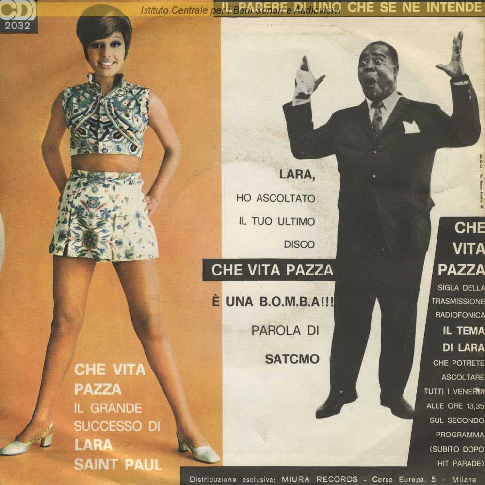 : "Che vita pazza" sigla del programma radio "Il tema di Lara" - "Adoro la vita" dal film "Gli insaziabili" (Alberto De Martino, 1969) / Distribuito da Miura Records - Milano